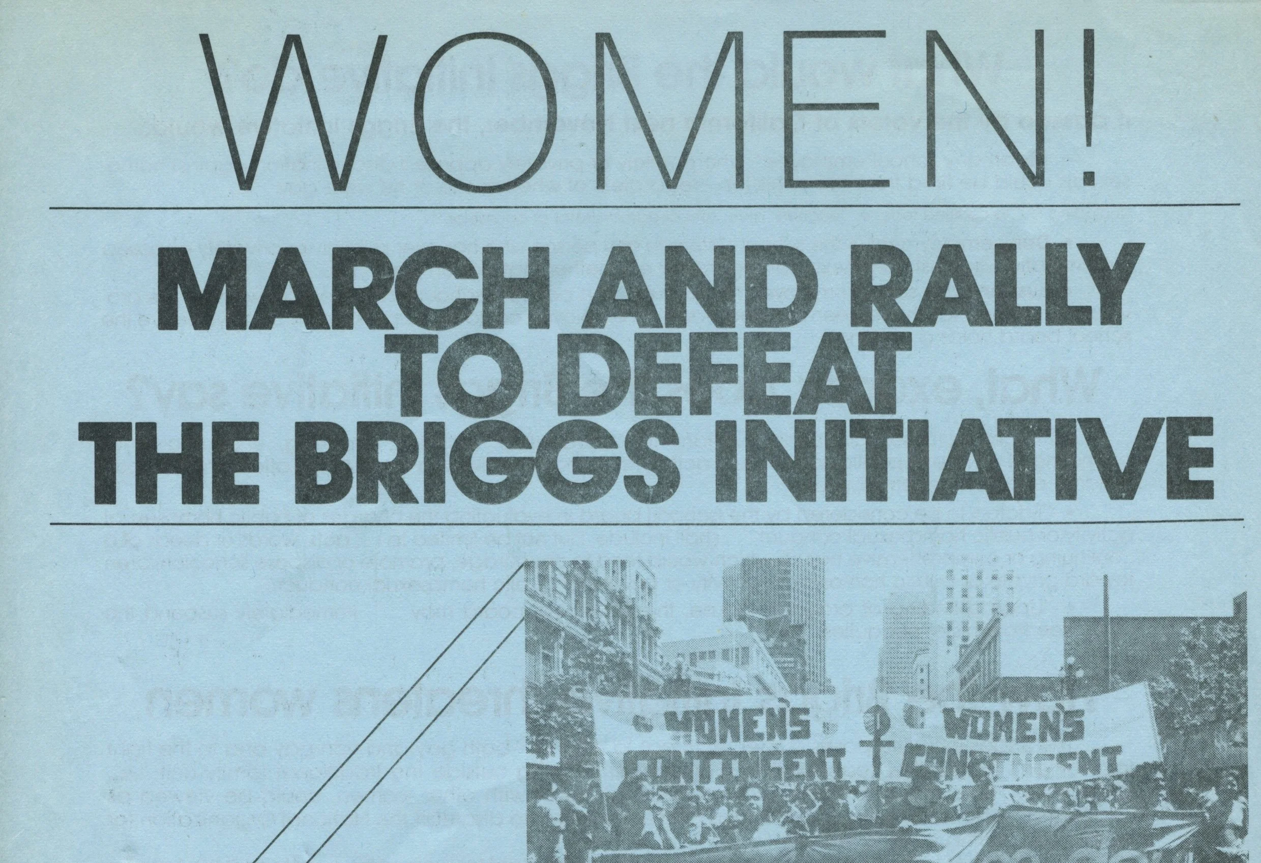 Paula Lichtenberg Papers, #1989-01. Paula Lichtenberg was co-chair of Bay Area Committee Against the Briggs Initiative (BACABI), a coalition organized in opposition to Proposition 6. This digital collection consists of outreach materials, support statements, and an organization plan for BACABI.